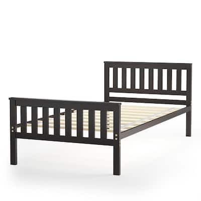 Costway Brown Twin Size Wood Platform Bed Frame with Headboard Slat Support Mattress