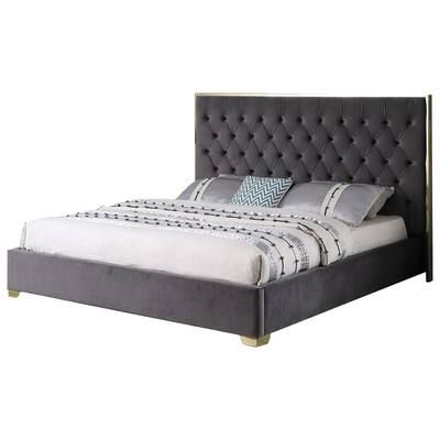Demarcus - Dark Gray Queen Velour Upholstered Bed (Gold Finish)