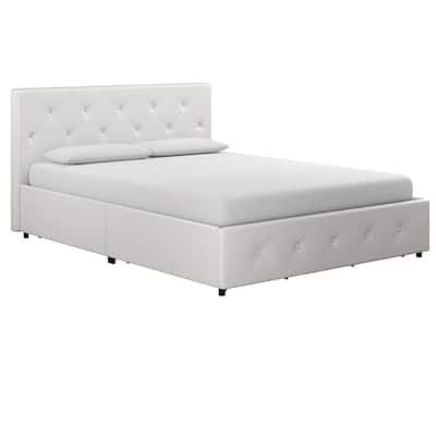 DHP Dean White Faux Leather Upholstered Queen Bed with Storage