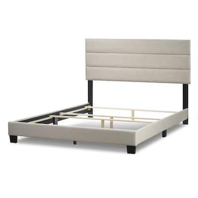 Glamour Home Aris Beige Fabric Queen Bed with Line Stitching Tufting