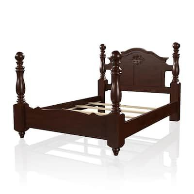Furniture of America Polasca Glossy Dark Pine Queen Four-Poster Bed