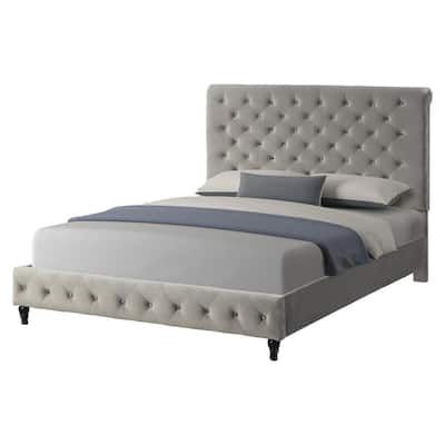 Gray Velvet Tufted Full Bed Frame with Upholstered Headboard No Box Spring Needed