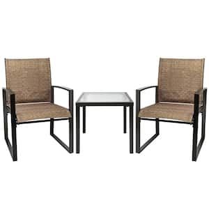 Peacock Blue 3-Piece Steel Foldable Chairs and Round Outdoor Table Bistro Set