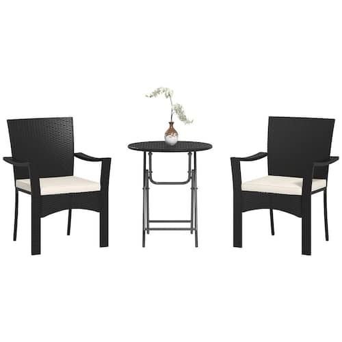 Outsunny Black 3-Piece PE Rattan Metal 27.5 in. Round Outdoor Bistro Set with White Cushions