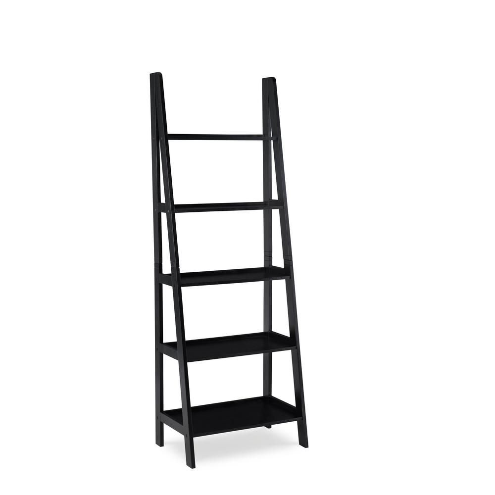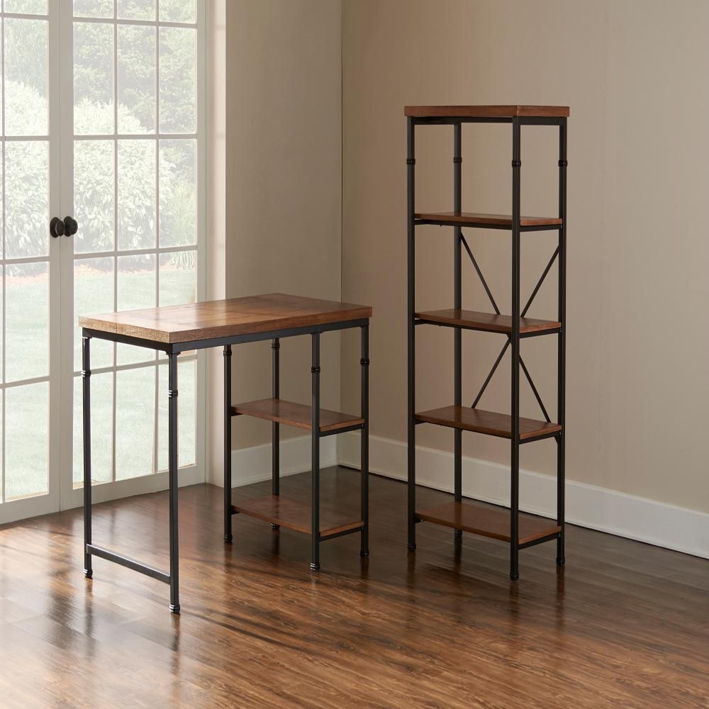 LITTON LANE 48-inch L x 17-inch W x 72-inch H Matte Black/Natural Brown Metal 5-Shelf Etagere Bookcase