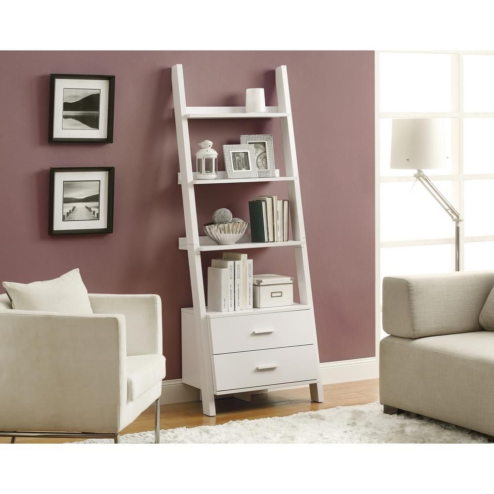 Monarch Specialties 69inch White Faux Wood 4-shelf Ladder Bookcase w/ Drawers