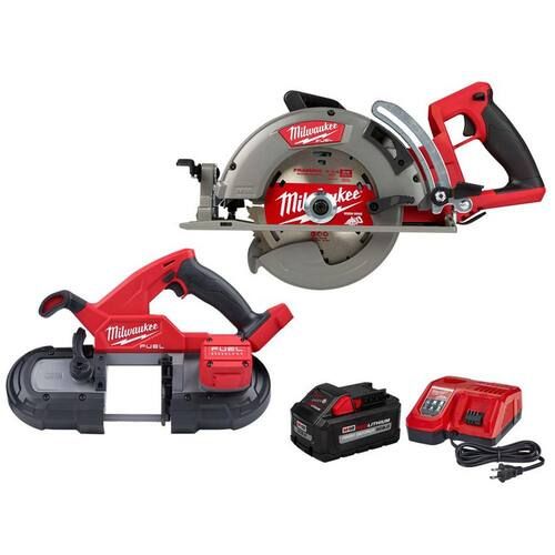 Milwaukee M18 FUEL 18V Lithium-Ion Cordless 7-1/4 in. Rear Handle Circular Saw w/Jig Saw & 8.0ah Starter Kit
