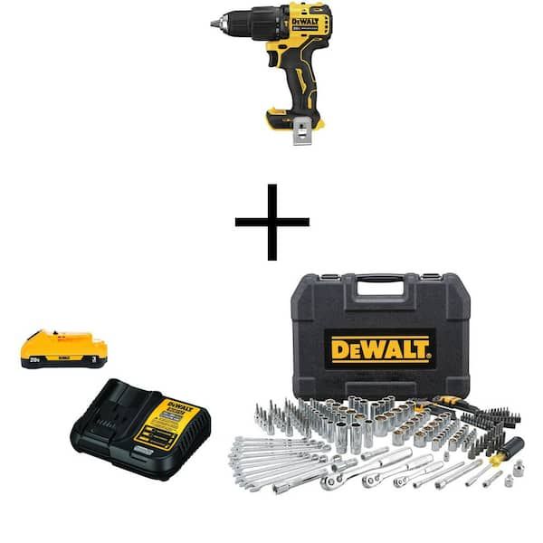 DEWALT ATOMIC 20V MAX Cordless Brushless Compact 1/2 in. Hammer Drill w/3.0Ah Battery Charger & Mechanics Tool Set (200-Piece)
