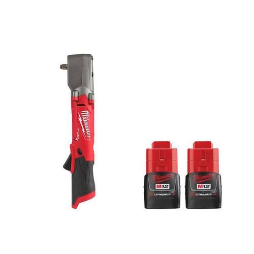 Milwaukee M12 FUEL 12V Lithium-Ion Brushless Cordless 3/8 in. Right Angle Impact Wrench With 1.5 Ah Battery Pack (2-Pack)