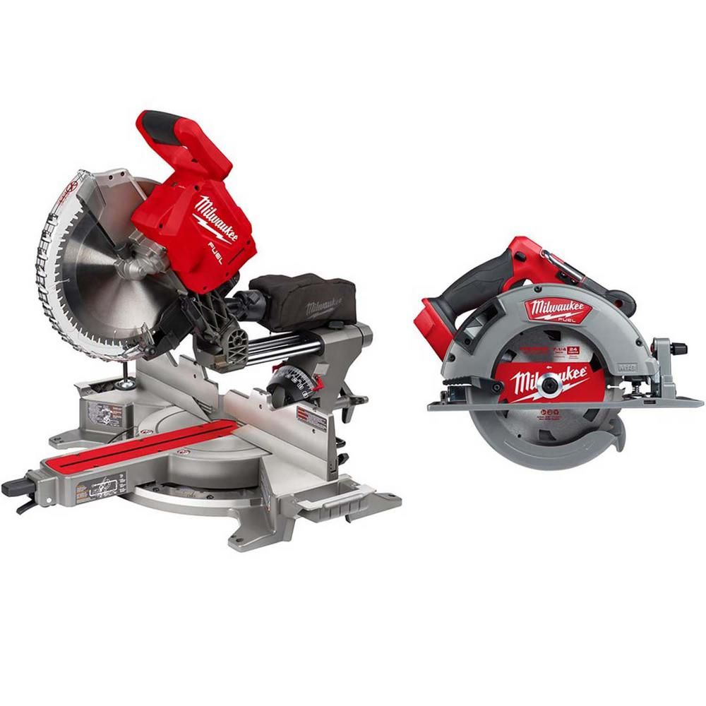 Milwaukee M18 FUEL 18-Volt Lithium-Ion Brushless 10 inch Cordless Dual Bevel Sliding Compound Miter Saw w/ 7-1/4 inch Circular Saw