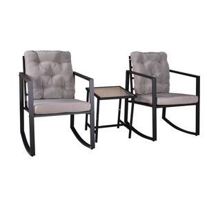 Black Plus Gray 3-Piece Metal Square 19.88 in. Table Height Outdoor Bistro Set