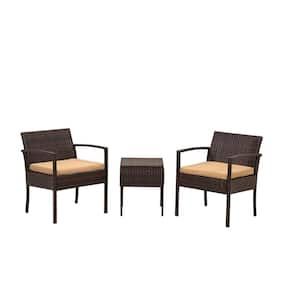 JUSKYS Brown 3-Piece Wicker Outdoor Bistro Set with Tan Cushion