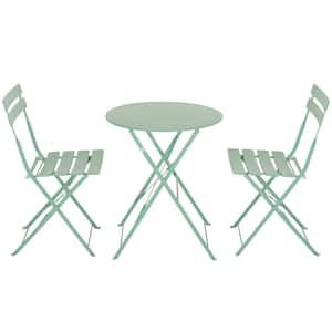 Mint Blue 3-Piece Steel Foldable Chairs and Round Outdoor Table Bistro Set