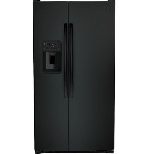 GE - 23.0 Cu. Ft. Side-by-Side Refrigerator w/ Thru-the-Door Ice and Water - High-Gloss Black - GSS23GGPBB