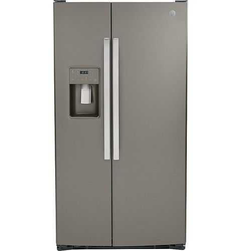 GE - 25.3 Cu. Ft. Side-by-Side Refrigerator w/ Thru-the-Door Ice and Water - Fingerprint Resistant Slate