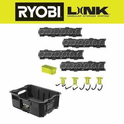 RYOBI LINK Tool Crate w/ LINK 7-Piece Wall Storage Kit and LINK Wall Rails (2-Pack)